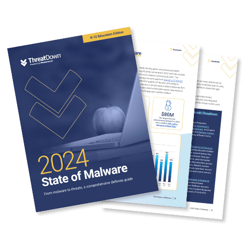 The 2024 State of Malware in Education is a comprehensive analysis of six pressing cyberthreats—including CL0P, Living Off The Land (LOTL) attacks, malvertising, and Big Game ransomware— and outlines the proactive measures IT and security teams can take to safeguard their organizations.