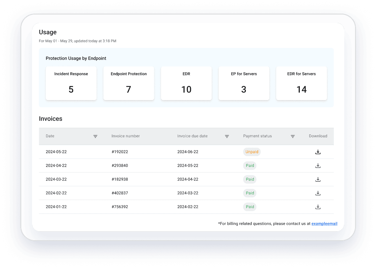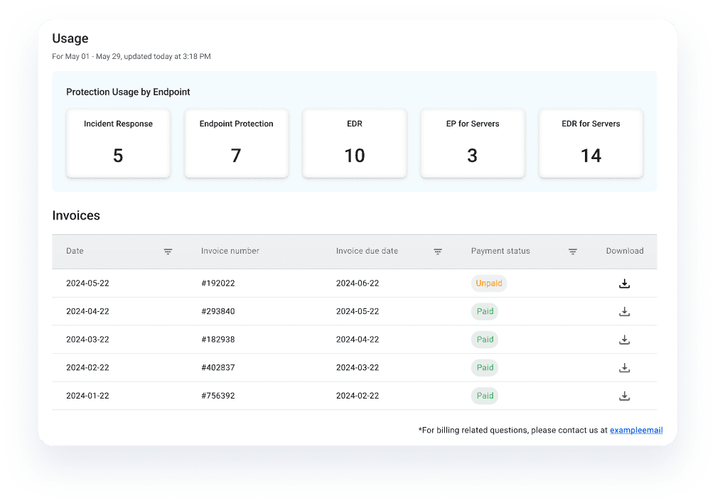 Take the worry and extra overhead off your billing team. View detailed usage reporting for each customer at a site-by-site level: history of billing changes, reconciliation data, audit log, and more.