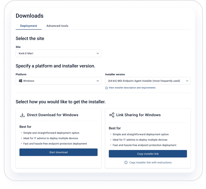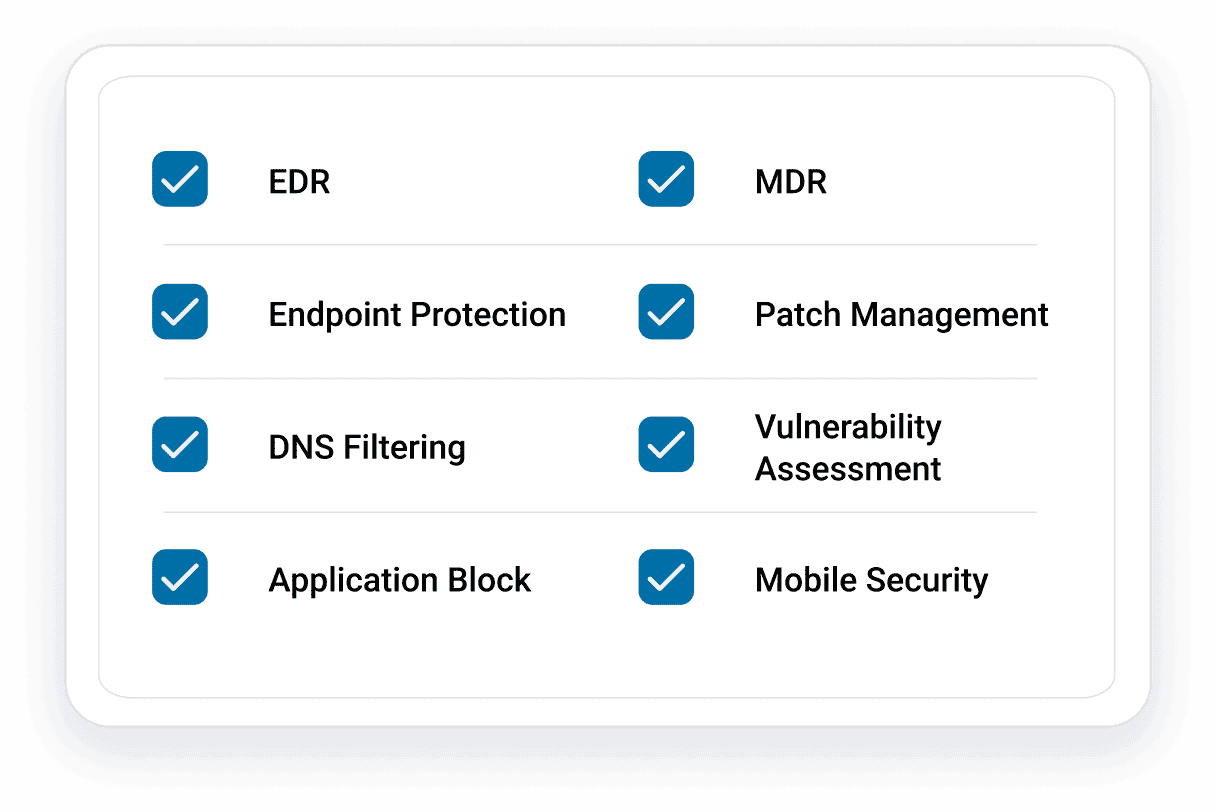 Simplify the endpoint security stack on a single agent to protect devices from ransomware, malware, viruses, breaches, vulnerabilities, and more; all without slowing down systems. Deploy in just a few minutes without reboots.