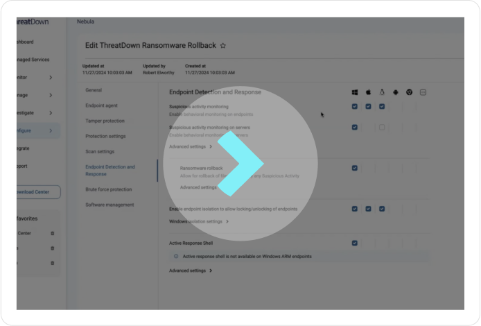 ThreatDown EDR includes ransomware rollback, allowing you to restore devices up to 7-days after a ransomware infection.