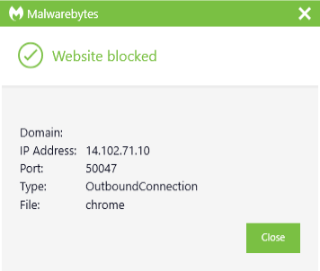 The IP address 14.102.71.10 was blocked as part of the range 14.102.71.10/32 by Malwarebytes because it was associated with a Trojan.