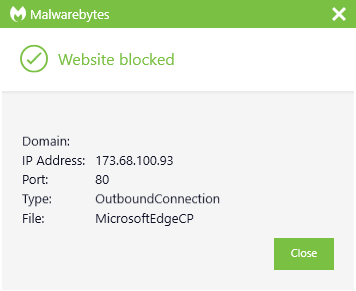 The IP address 173.68.100.93 was blocked as part of the range 173.68.100.93/32 by Malwarebytes because it was associated with a Trojan.