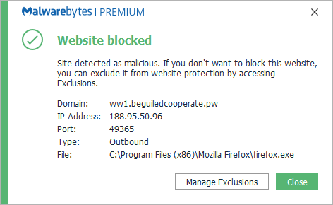 The IP 188.95.50.96 is detected by Malwarebytes because it hosts several domains that spread an infection with an adwarecalled Adware.Dotdo.