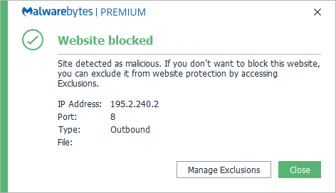 The IP 195.2.240.2 is detected by Malwarebytes because it is used to spread fileless malware, which we detect as Trojan.Poweliks.