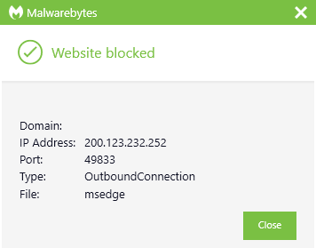 The IP address 200.123.232.252 was blocked as part of the range 200.123.232.252/32 by Malwarebytes because it was associated with a Trojan.