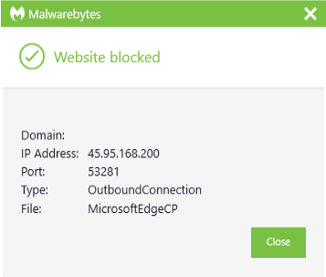 The IP address 45.95.168.200 was blocked as part of the range 45.95.168.200/32 by Malwarebytes because it was associated with a Trojan.