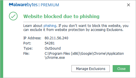 The IP 80.211.56.240 was blocked because it was associated with phishing.
