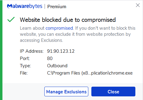 Malwarebytes blocks the IP 91.90.123.12