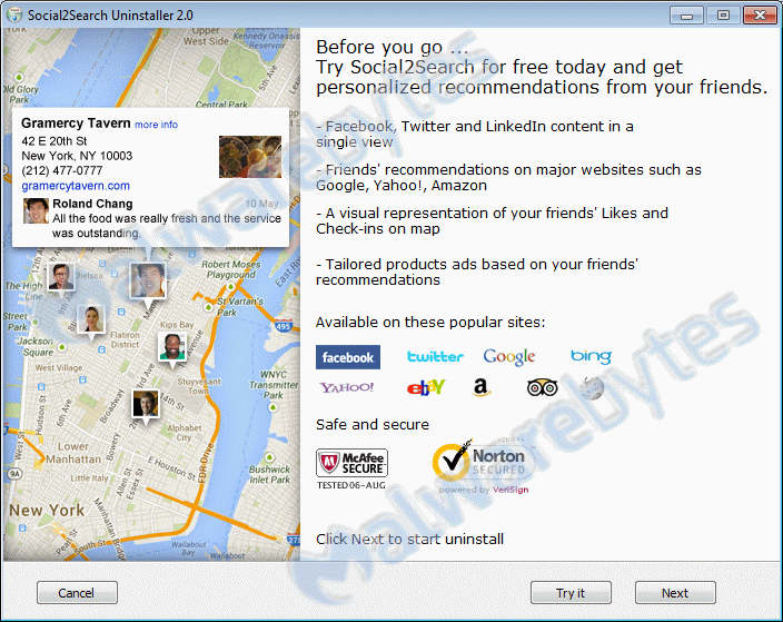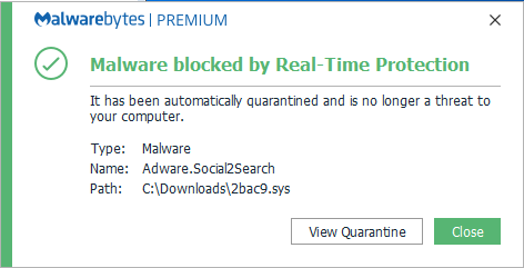 Malwarebytes can detect and remove Adware.Social2Search without further user interaction.