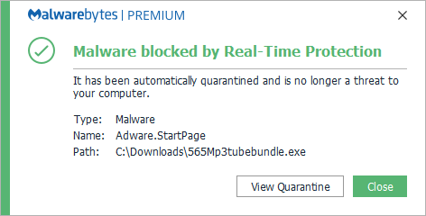 Malwarebytes can detect and remove Adware.Startpage without further user interaction.