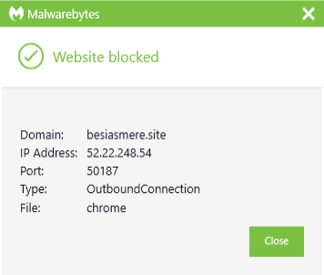 The domain besiasmere.site was blocked by Malwarebytes because it was associated with a potentially unwanted program (PUP).