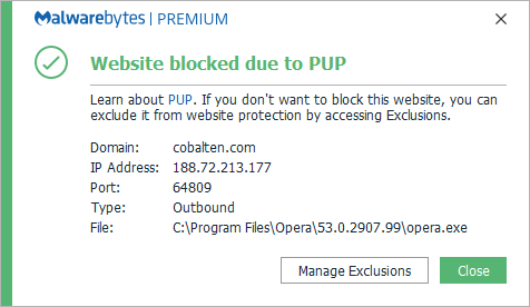 The domain cobalten.com was blocked because it was associated wtith potentially unwanted programs (PUPs).