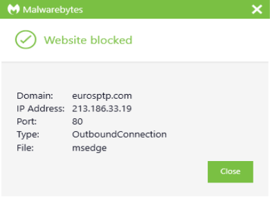 The domain eurosptp.com was blocked by Malwarebytes because it was associated with a Trojan.