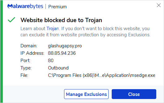 The domain glashugapsy.pro was blocked by Malwarebytes because it was associated with a Trojan.