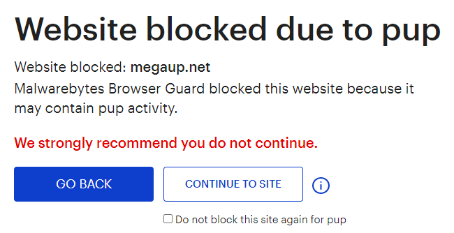 The domain megaup.net was blocked by Malwarebytes because it was associated with PUPs.