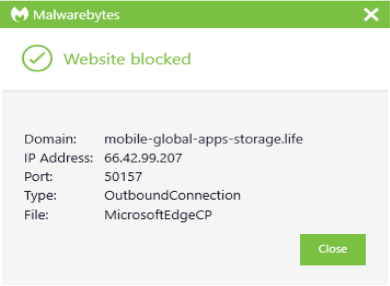 The domain mobile-global-apps-storage.life was blocked by Malwarebytes because it was associated with malvertising.