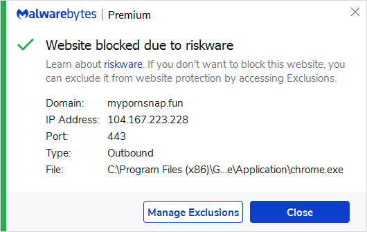 The domain mypornsnap.fun was blocked by Malwarebytes because it was associated with riskware.