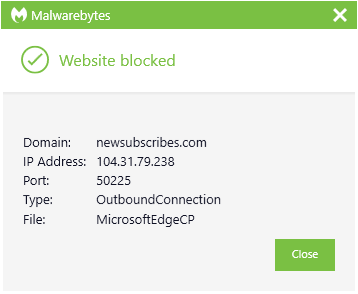 The domain newsubscribes.com was blocked by Malwarebytes because it was associated with malvertising.