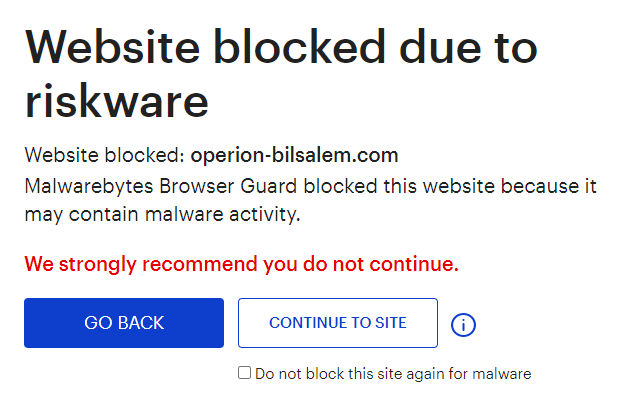 The domain operion-bilsalem.com was blocked by Malwarebytes because it was associated with riskware.