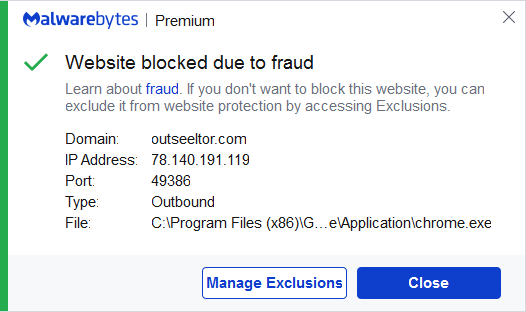 The domain outseeltor.com was blocked because it was associated with fraud.