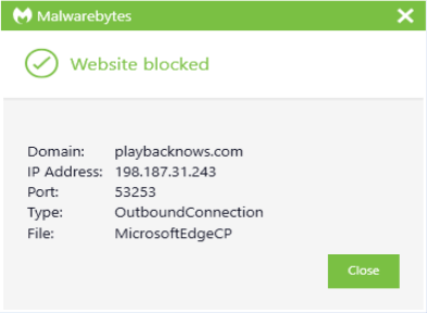 The domain playbacknows.com was blocked by Malwarebytes because it was associated with hijacks.