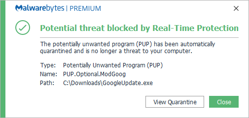 Malwarebytes can detect and remove PUP.Optional.ModGoog without further user interaction.