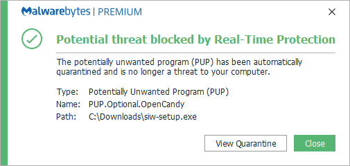 Malwarebytes can detect and remove PUP.Optional.OpenCandy without further user interaction.