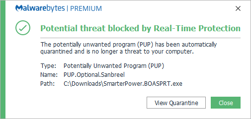 Malwarebytes can detect and remove PUP.Optional.Sanbreel without further user interaction.