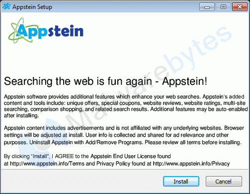 PUP.Optional.Sanbreel uses different methods of browser hijacking and monetizing to get their advertisements across.Sanbreel adware is usually installed by a bundler, but they do create sites and offer them as separate downloads.The bundled installer is usually different from the official one. The bundled installers require arguments for a full installation and are sometimes even aware of running on a virtual machine, both to hinder researchers.