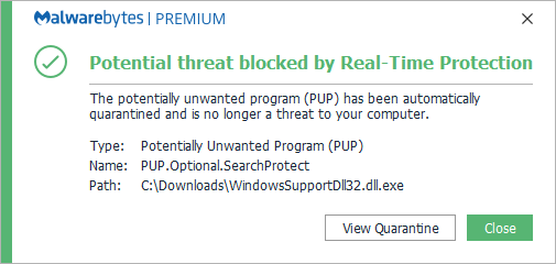 Malwarebytes can detect and remove PUP.Optional.SearchProtect without further user interaction.