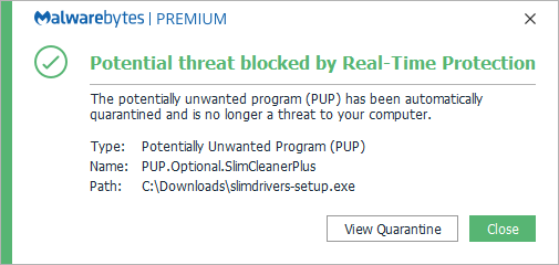 PUP.Optional.SlimCleanerPlus is Malwarebytes’ detection name for the SlimCleaner Plus software, a potentially unwanted program (PUP) optimization tool that displays suspicious warnings and pop-up alerts to users about their systems being infested with errors that need fixing. These, of course, are all false detections to get users to purchase the paid version of the SlimCleaner Plus software.