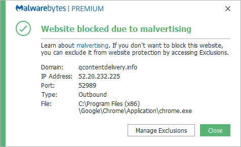 The domain qcontentdelivery.info was blocked because it is involved in malvertising.