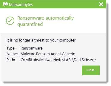 Malwarebytes can detect and remove Ransom.DarkSide without further user interaction.