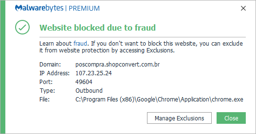 Several subdomains of the domain shopconvert.com.br have been blocked because they were associated with fraud.