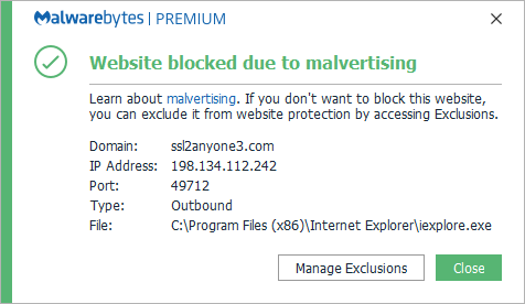 The domain ssl2anyone3.com was blocked because it was associated with malvertising.