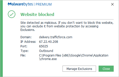 The domain trafficforce.com is blocked because it serves advertisements leading to PUPsand fraudulentsites.
