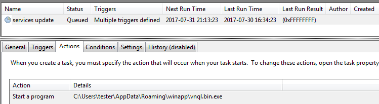 Trojan.TrickBot gains persistence by creating a Scheduled Task.