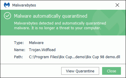 Malwarebytes can detect and remove Trojan.Wdfload without further user interaction.