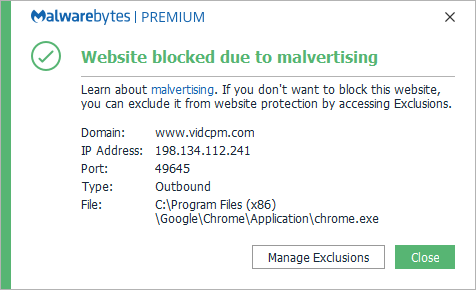 The domain vidcpm.com was blocked because it is involved in malvertising.