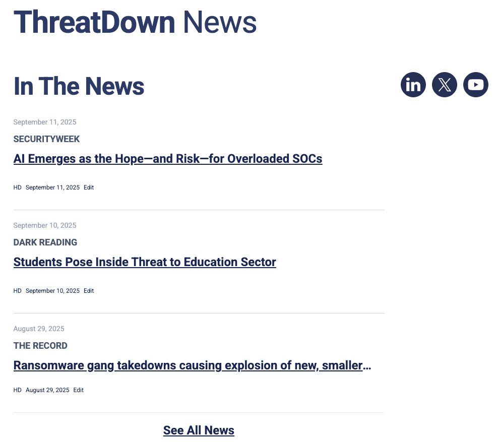The press page now includes external publishers to spread the word of where else ThreatDown is mentioned.